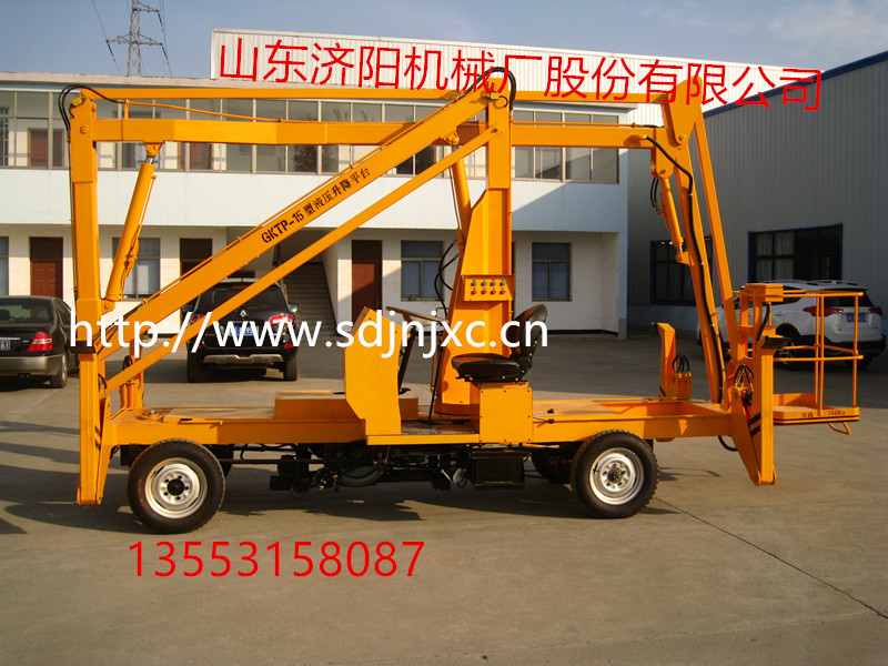 一、產(chǎn)品說明:曲臂式升降機(jī)是山東濟(jì)陽機(jī)械廠最新研制的高空作業(yè)設(shè)備,具有操作簡單體積小,重量輕,價格便宜,外形美觀、作業(yè)面積大、移動方便,特別是能夠跨越障礙物進(jìn)行作業(yè)等優(yōu)點、是理想的登高作業(yè)設(shè)備。廣泛應(yīng)用與車站、碼頭、賓館大廳、倉庫、車間以及供電和建筑裝璜等部分需要高空作業(yè)的場合。